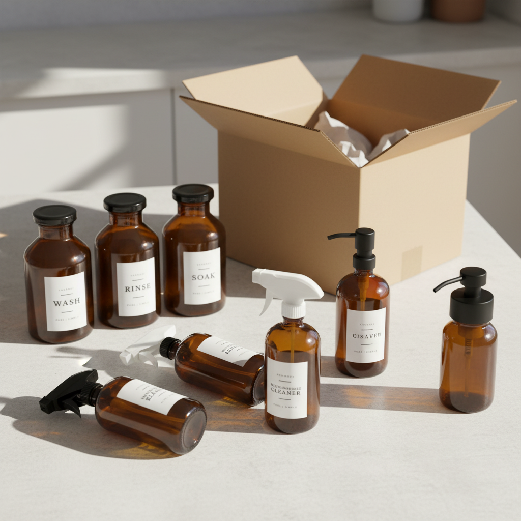 This complete home glassware kit gives you a reusable, low-waste setup for storing and using your handmade cleaning products across the home.